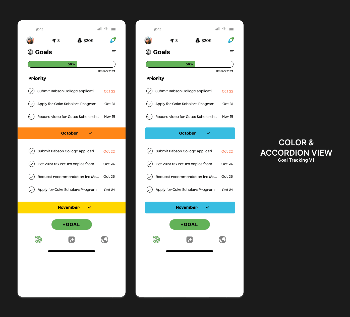 Final design for goal tracking feature